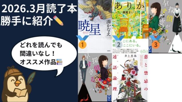 💬なぞ九郎の捜査記録 【2026年3月読書記録】おすすめ小説4冊|『暁星』『ありか』ほかネタバレなし感想 2026年4月3日 blogken28106 |真実は本の中に|初心者でもハマる!どんでん返しと天才キャラに出会えるミステリ小説ブログ 🐧イントロダクション なぞ九郎 📚2026年3月は、かなり“当たり月”だったぴよ…!🐧✨ …